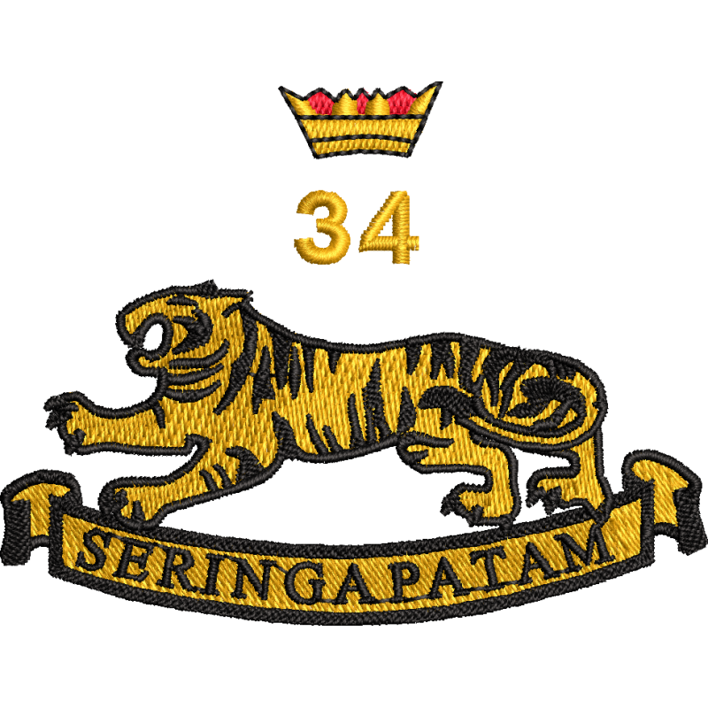 Alternative wick PT top for 34 Bty is Bottle Green and embroidered with the battery logo on the left chest. With a small Kukri on the back neck and TIGERS in yellow across the shoulders.