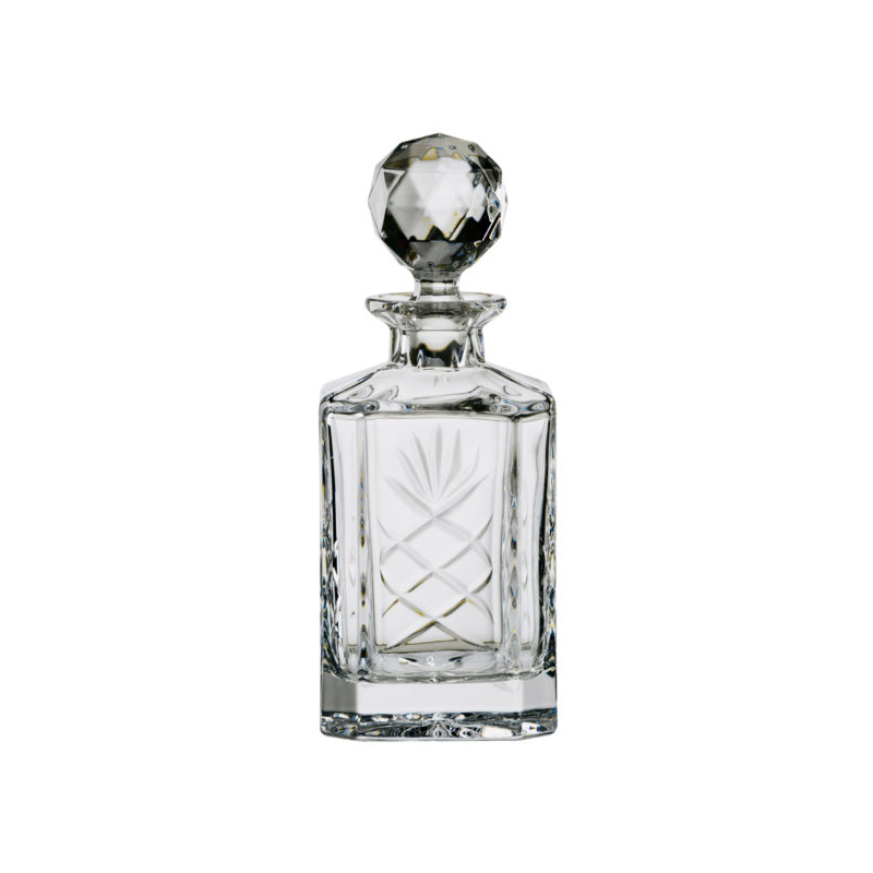 The decanter is laser engraved for a sharp finish and then painted with pewter paint so the design stands out.