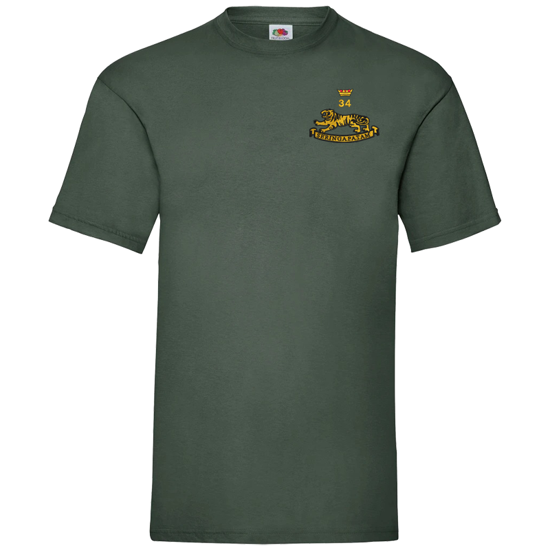 A Premium Cotton T-shirt for 34 Battery 2026, featuring the King’s Gurkha Artillery kukri swords design.